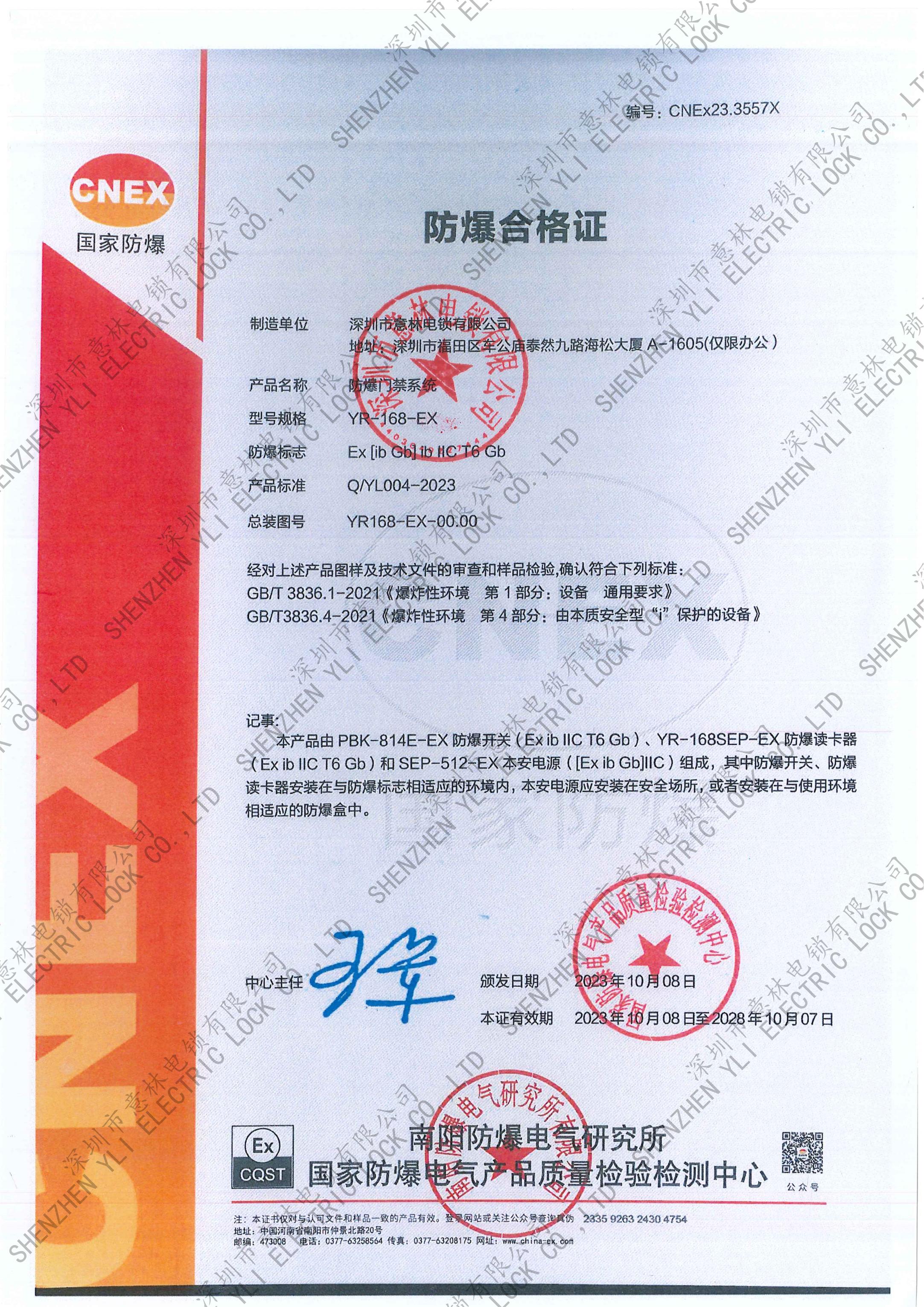 防爆電插鎖合格證