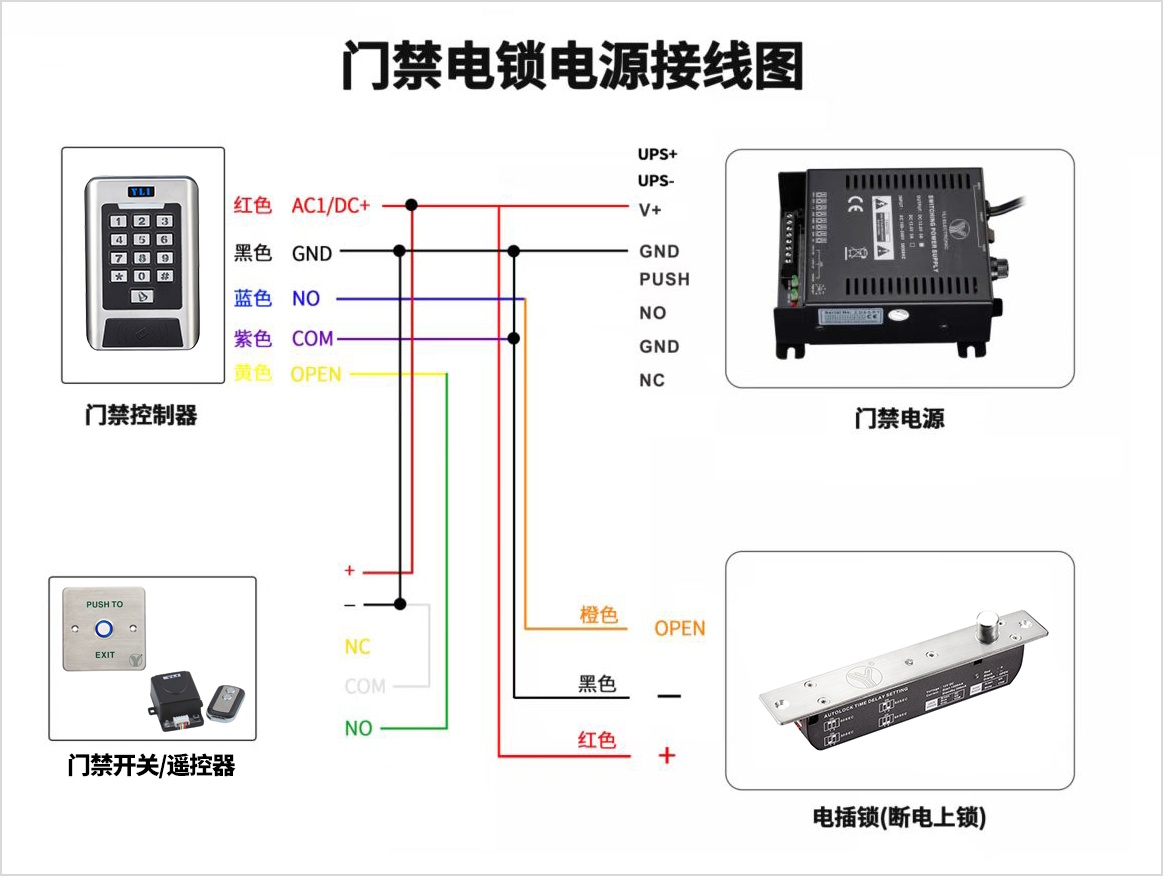 在接線時,請確保遵循以下原則:根據(jù)電插鎖的類型和門禁系統(tǒng)的要求,選擇正確的接線方式。