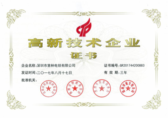 深圳市高新技術(shù)企業(yè)證書(shū)