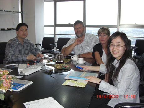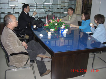 岑總與客戶在廠區(qū)合照留影 岑總與客戶在工廠會議室洽談