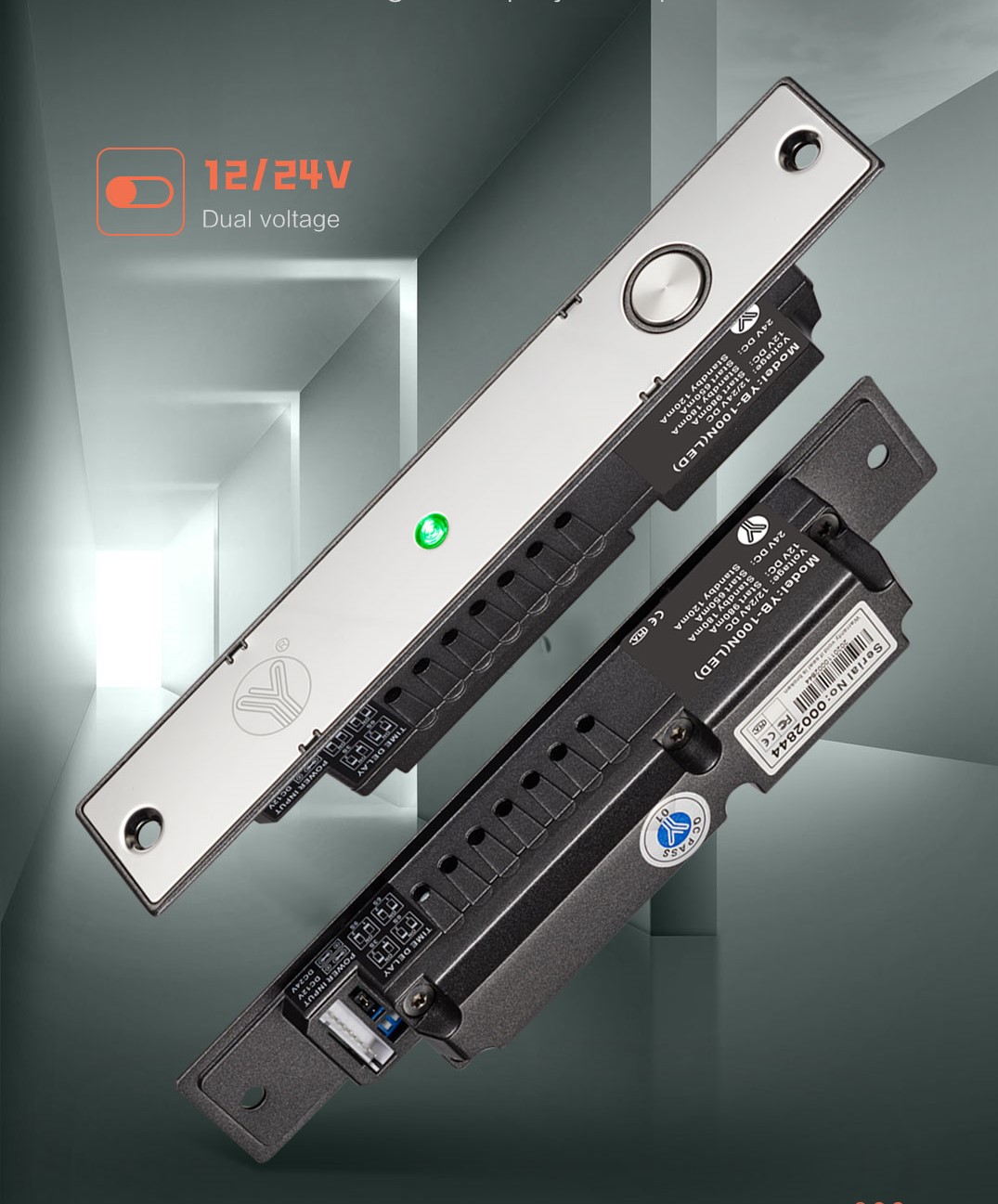 YB-100N(LED) is a multi-functional fail safe electric bolt with double protection for loading current.suitable for glass door, wooden door, metal door . We supply integrated equipment to collocate with fully frameless glass door, swing-in d