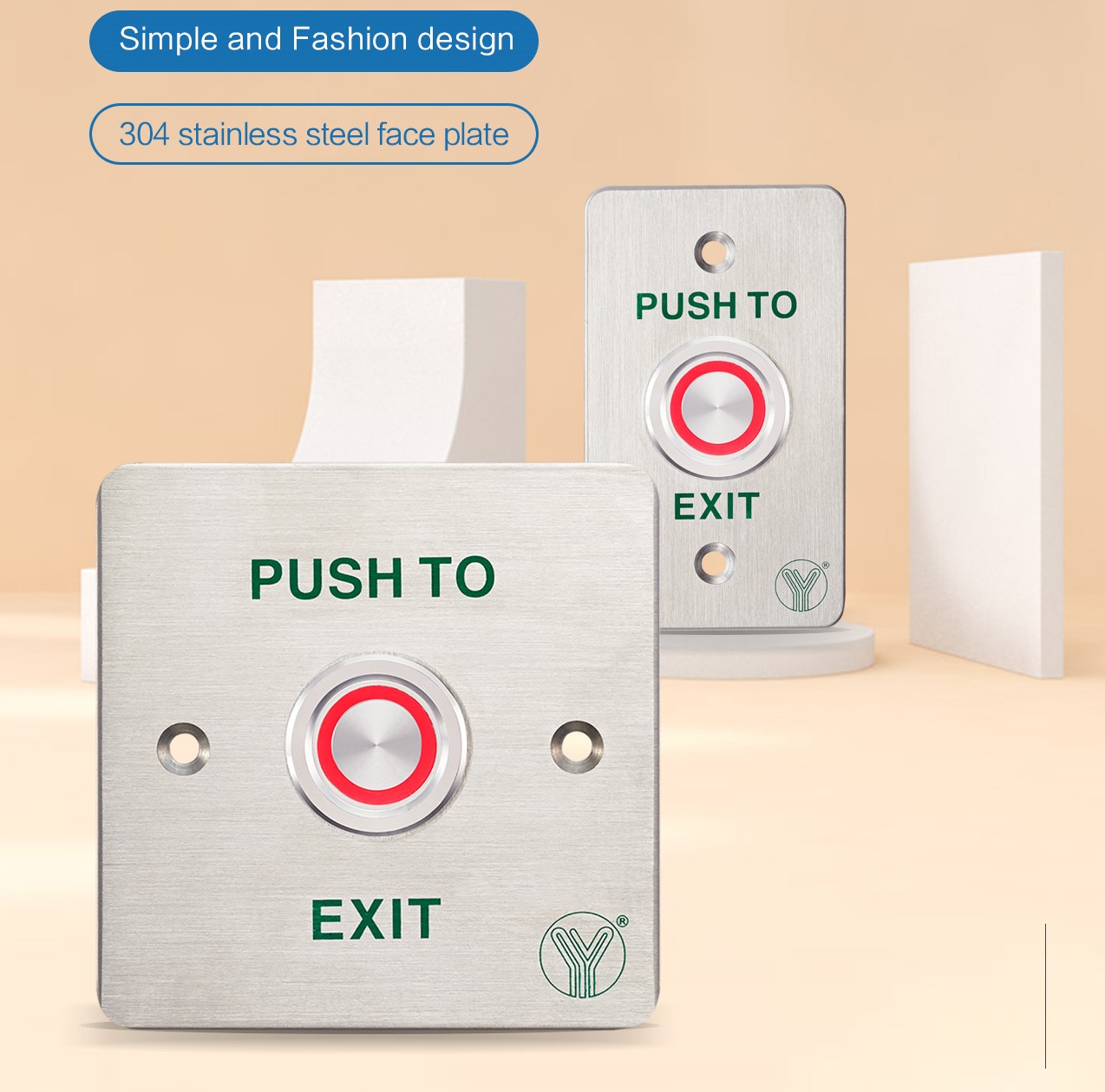 door release button with stainless steel palte with size of 86Lx50Wx40.1H(mm), which is the most common and the most frequently used in the access control systems.