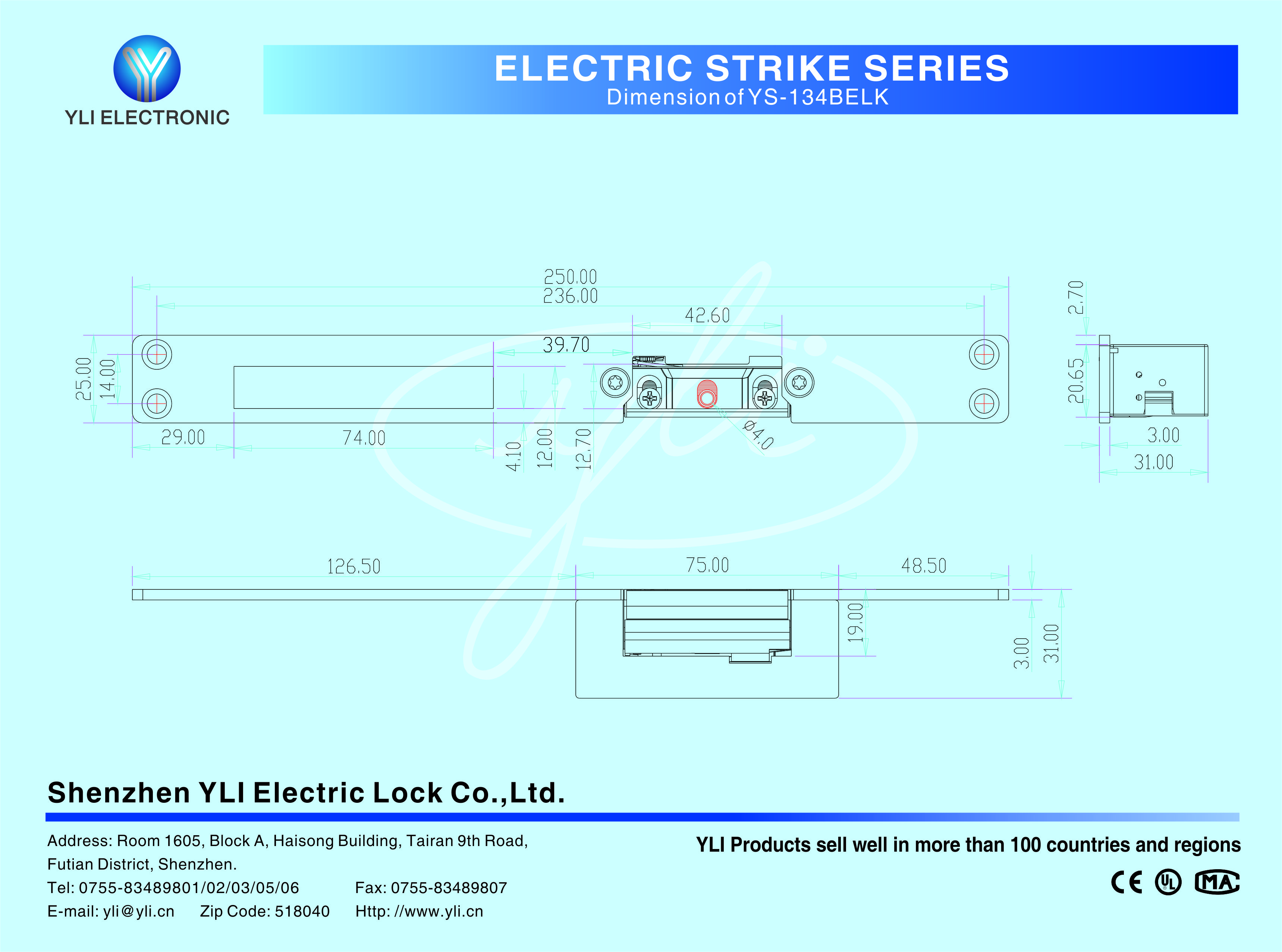 250Lx25Wx28.5H(mm) (YS-134ELK) 250Lx25Wx31H(mm) (YS-134BELK) |