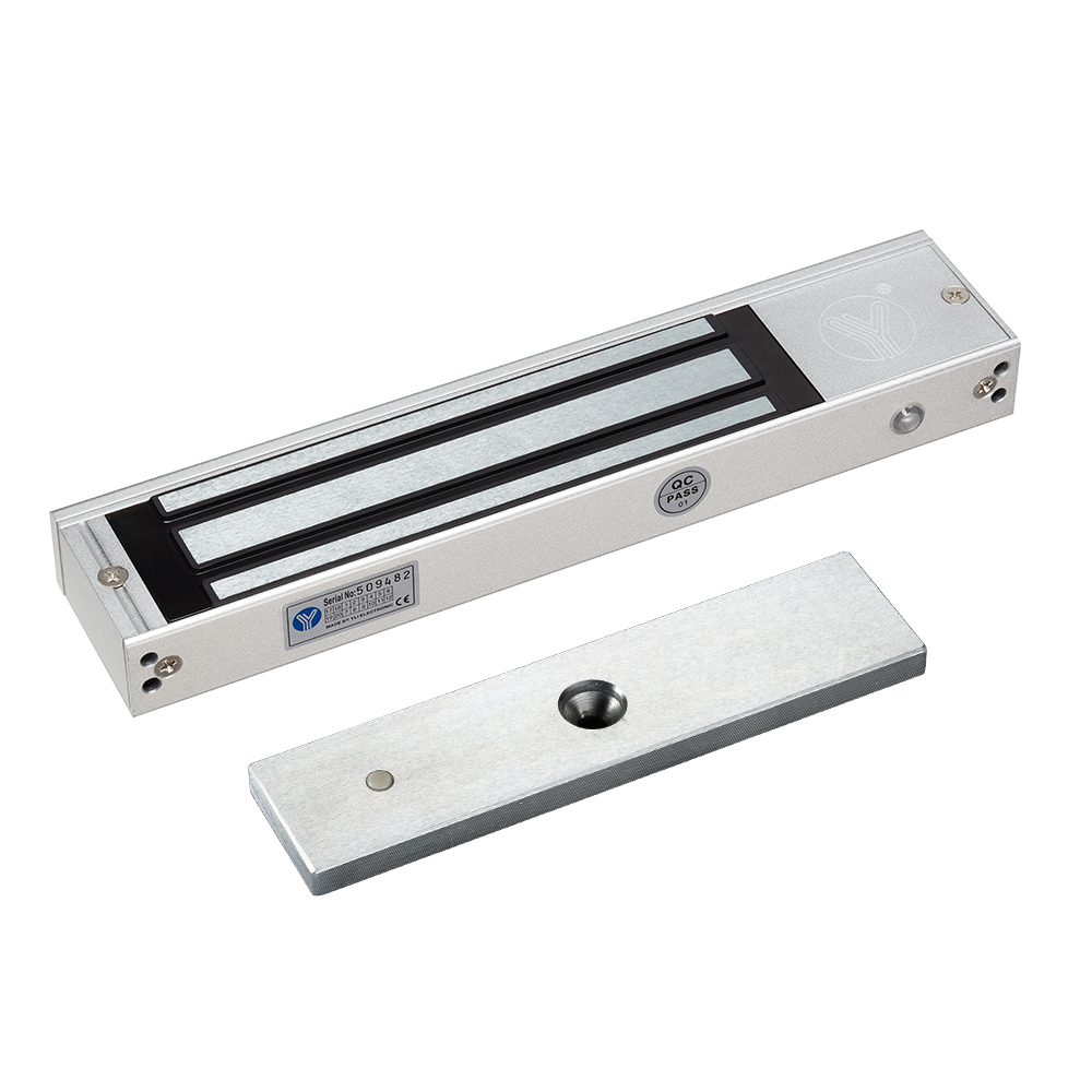 YM-350N(LED) Single door magnetic lock is designed for wooden door, metal door, glass door and fireproof door. There is a set of lock status signal (NO/NC/COM) output contacts. The lock body is equipped with a large LED light . The green light indicates unlocking , and the red light indicates locking. YLl magnetic lock cores are produced with robotic laser welding technology, providing 2 to 3 times stronger impact resistance and torsional resistance than conventional production processes . The surface is treated with the internationally leading electroplating process and the lock itself has passed the 240-hour salt spray test in the national laboratory, achieving excellent performance of anti-oxidation, anti-rust and anti-corrosion. Our company offers a complete range of brackets for different locks.