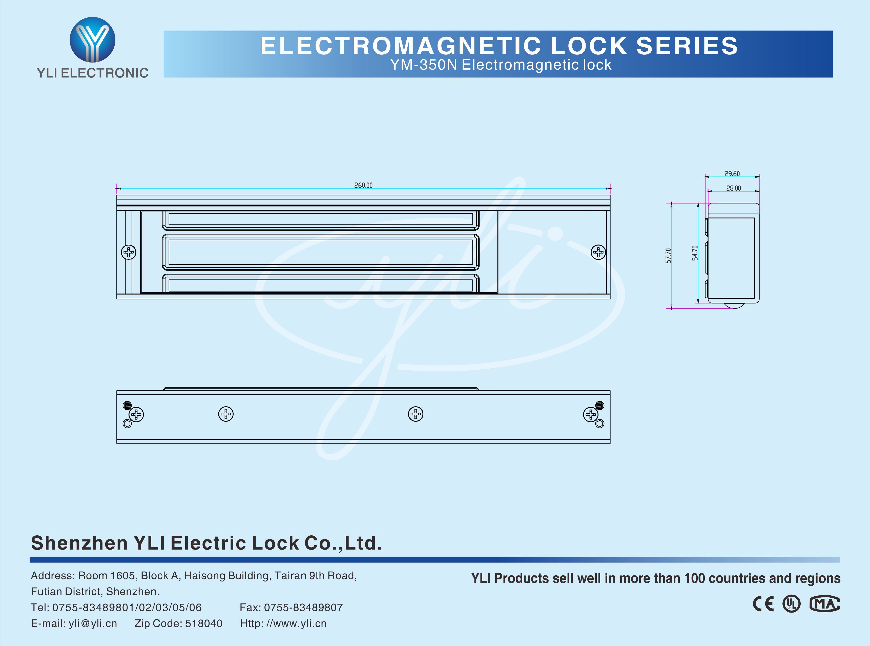 YM-350N Single door magnetic lock is designed for wooden door, metal door, glass door and fireproof door. YLl magnetic lock cores are produced with robotic laser welding technology ,providing 2 to 3 times stronger impact resistance and torsional resistance than conventional production processes. The surface is treated with the internationally leading electroplating process and the lock itself has passed the 240-hour salt spray test in the national laboratory, achieving excellent performance of anti-oxidation, anti-rust and anti-corrosion. Our company offers a complete range of brackets for different locks.