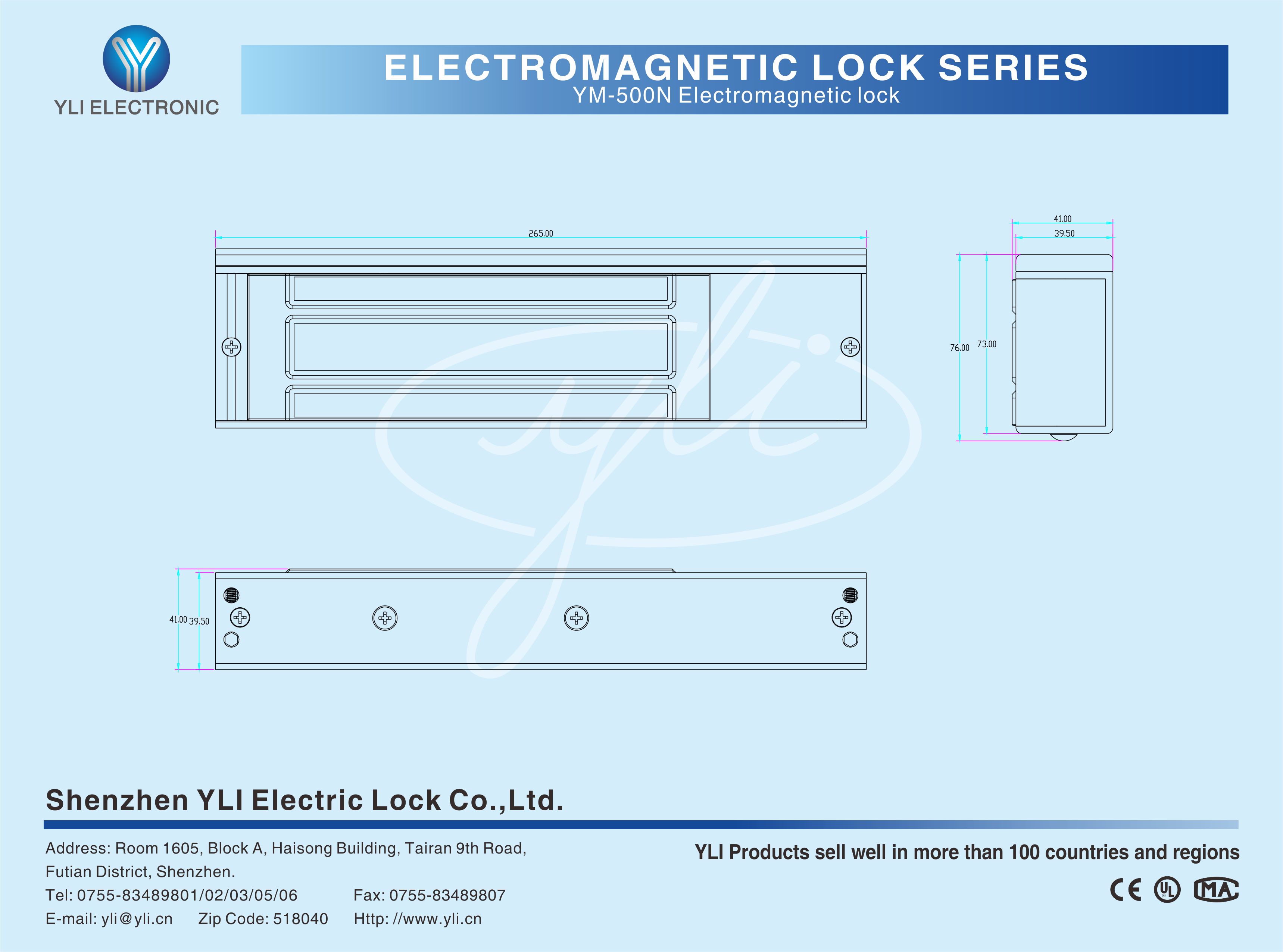 YM-500N Single door magnetic lock is designed for wooden door, metal door, glass door and fireproof door. YLl magnetic lock cores are produced with robotic laser welding technology ,providing 2 to 3 times stronger impact resistance and torsional resistance than conventional production processes. The surface is treated with the internationally leading electroplating process and the lock itself has passed the 240-hour salt spray test in the national laboratory, achieving excellent performance of anti-oxidation, anti-rust and anti-corrosion. Our company offers a complete range of brackets for different locks.