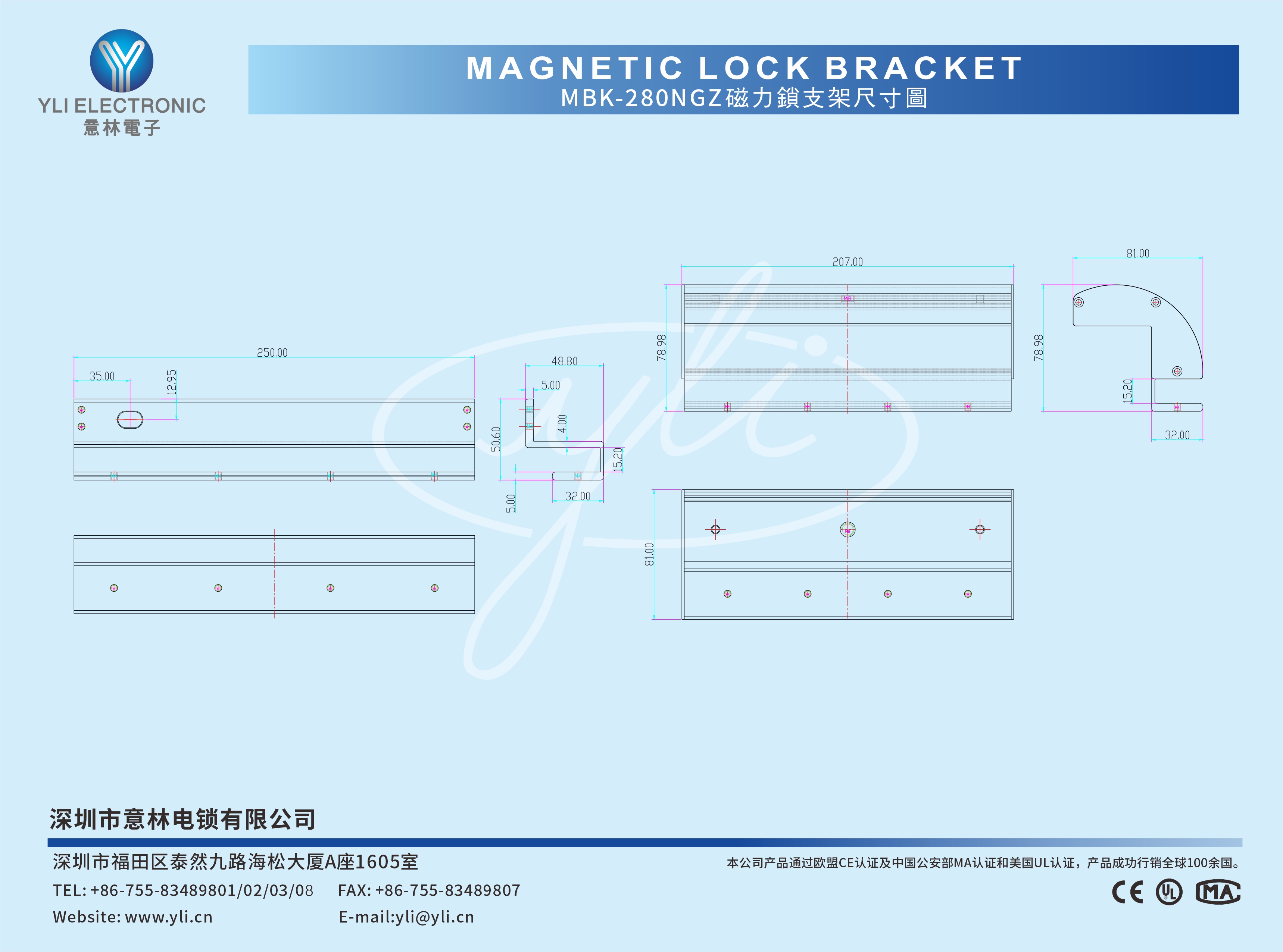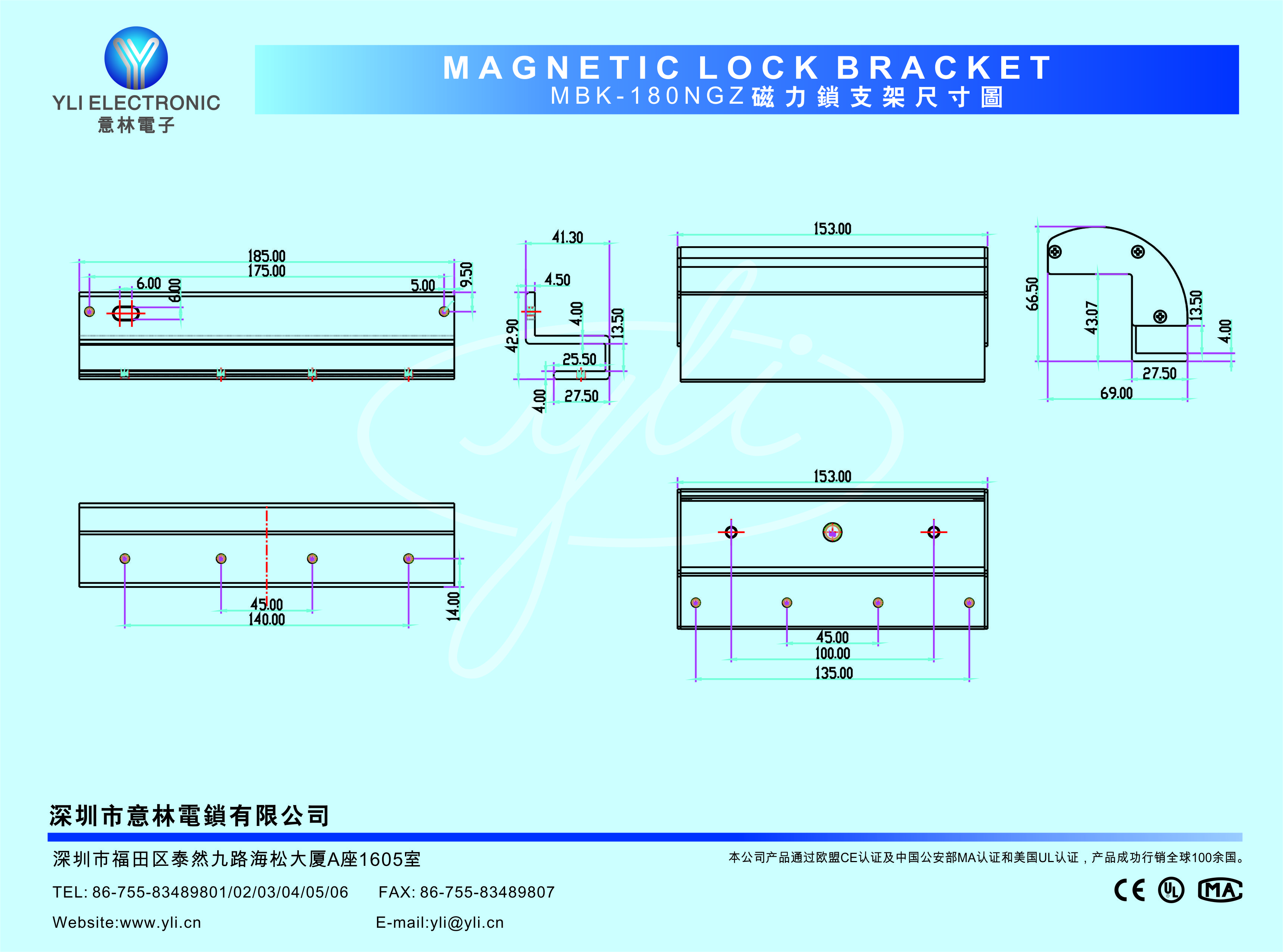 適用電鎖  YLI品牌180KG系列磁力鎖 (MBK-180NGZ)