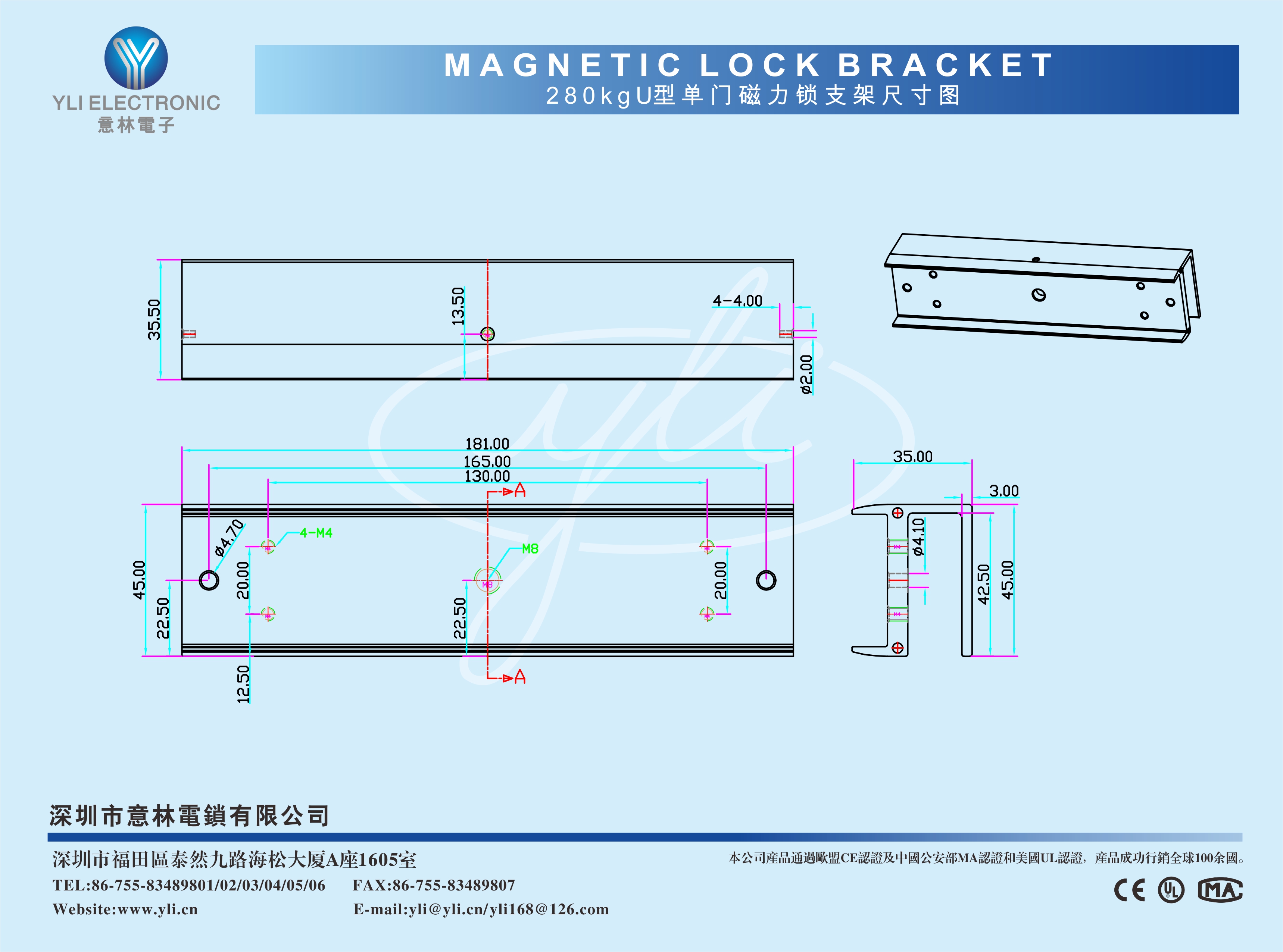 適用電鎖 YLI品牌系列磁力鎖