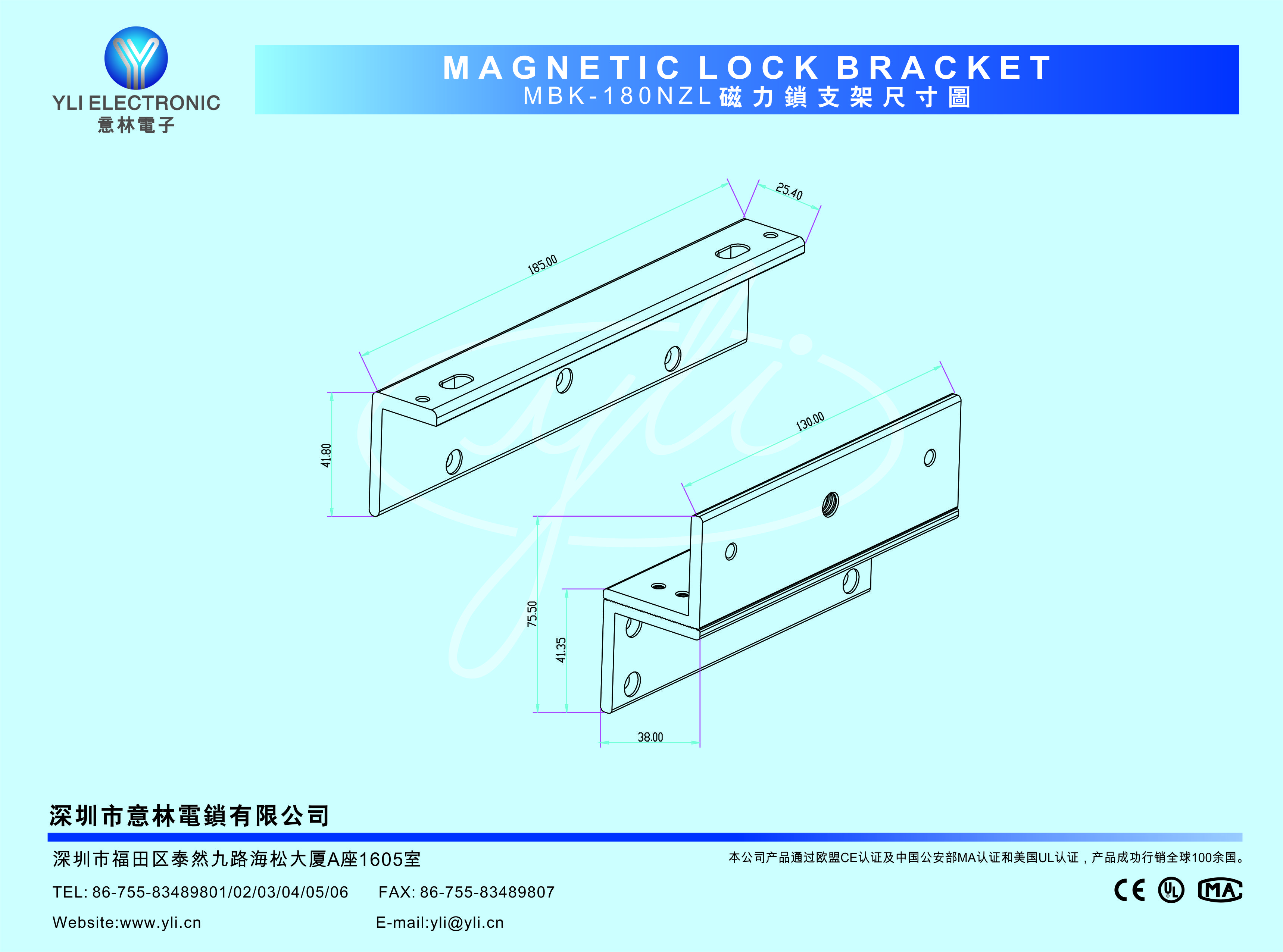 外形尺寸  L型支架:長185x寬41.8x厚25.4(mm)     Z型支架:長130x寬38x厚38(mm) (MBK-180NZL)