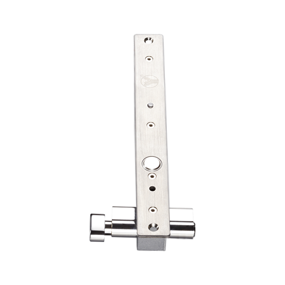整體式不銹鋼實心材質,經CNC車床精加工而成,靜態強度測試約1400kg,不同于市面上空心管加工后用膠塞的空心鎖舌部件,受力撞擊及嚴寒環境鎖舌脫落等問題。