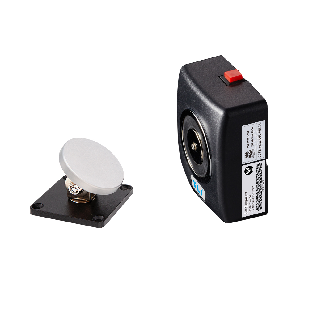 YD-607是一款防火塑料外殼電磁門吸,電磁門吸可單獨(dú)使用或與消防系統(tǒng)一起使用,電磁 門吸的電源是由消防系統(tǒng)供電(DC12或24V)。日常各區(qū)域之間的消防通道防火門由電磁門吸吸住門扇保持開(kāi)門狀態(tài),當(dāng)火災(zāi)警報(bào)時(shí)消防系統(tǒng)斷電,電磁門吸在斷電狀態(tài)下迅速釋放門扇,防火門由閉門器自動(dòng)關(guān)閉,有效阻擋火勢(shì)與煙霧蔓延到另外區(qū)域。本產(chǎn)品廣泛應(yīng)用在商場(chǎng),酒店,寫字樓,醫(yī) 院、學(xué)校、或是公共建筑等。意林電磁門吸專業(yè)殘磁設(shè)計(jì)0.5秒消磁釋放門扇,系列產(chǎn)品通過(guò)歐盟EN1634.3小時(shí)防火認(rèn)證及國(guó)家實(shí)驗(yàn)室500小時(shí)鹽露測(cè)試,更安全,更持久耐用,是市場(chǎng)上少有合規(guī)產(chǎn)品。