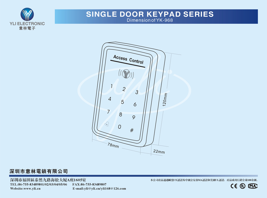 YK-968 是一款采用非接觸式感應卡和密碼進行出入管制的門禁一體機,使用簡單、性能可靠。